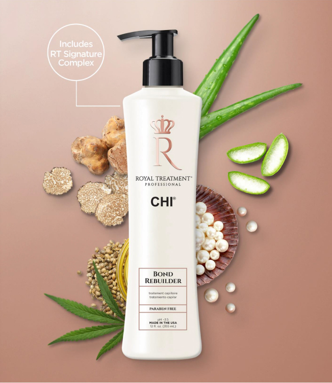 Royal Treatment Bond & Repair è un sistema di ricostruzione che contiene un agente di legame di origine naturale che funge da alternativa ai prodotti realizzati con la chimica sintetica. Il nostro agente di legatura a base vegetale è realizzato utilizzando la chimica del glucosio ed è combinato con l’aloe e l’olio di canapa. Questo sistema viene utilizzato durante i trattamenti chimici per creare legami tra gli aminoacidi, riducendo lo stress dei capelli e rafforzando il complesso cheratinico dei capelli. Dopo il trattamento chimico, questo sistema ripristina l’idratazione e la morbidezza, continua a rafforzare la cheratina nei capelli collegando gli aminoacidi, costruisce legami idrogeno e salini (ionici) e chiude le cuticole per capelli sani con un’incredibile lucentezza.